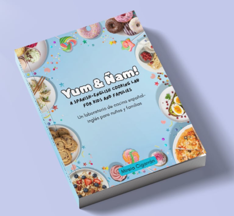 Un recetario bilingüe (inglés–español) para que niños y familias aprendan mientras cocinan con Santa y sus amigos. Explora 4 mundos deliciosos llenos de recetas fáciles, curiosidades y páginas creativas para inventar tus propios platos. Con el sistema de “semáforo de cocina”, los peques sabrán cuándo pueden cocinar solos y cuándo necesitan ayuda. Ideal para aprender inglés, descubrir nuevos sabores y disfrutar momentos mágicos en familia.
