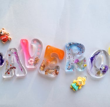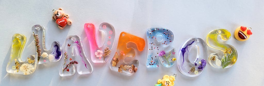 🌸 Los llaveros de resina contienen pequeñas flores silvestres que recolectan durante nuestros paseos por el bosque.